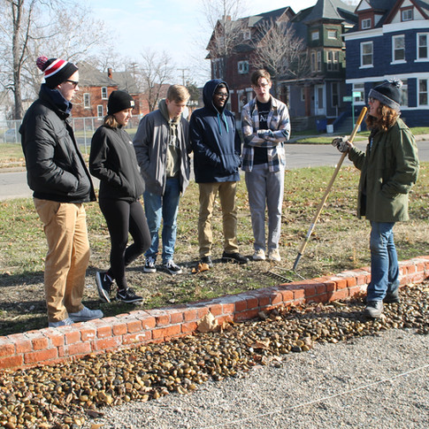 The members helped move gravel into the farms market place and level it out. We also learned a lot about agricultural engineering and how important sustainability is in Detroit.